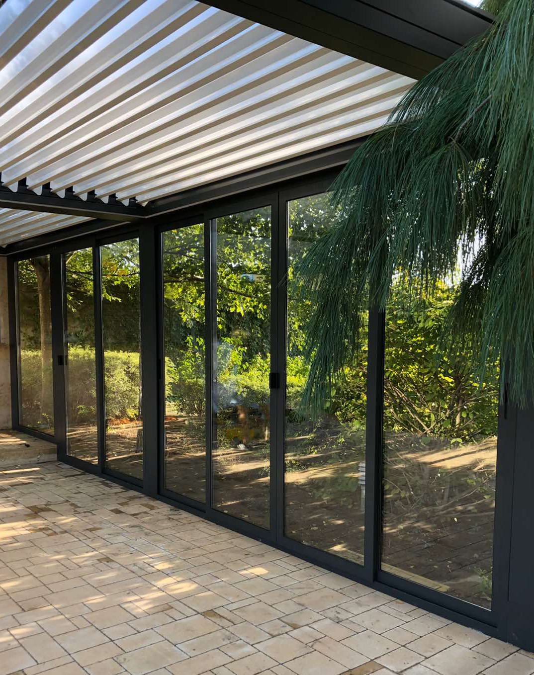 Modern, esztétikus kiegészítője a pergoláknak és teraszoknak. Segítségükkel az alumíniumárnyékolók teljesen beépíthetők, télikertté alakíthatók. Az alumínium síneken tolható alumínium keret balesetbiztos üveggel van ellátva.