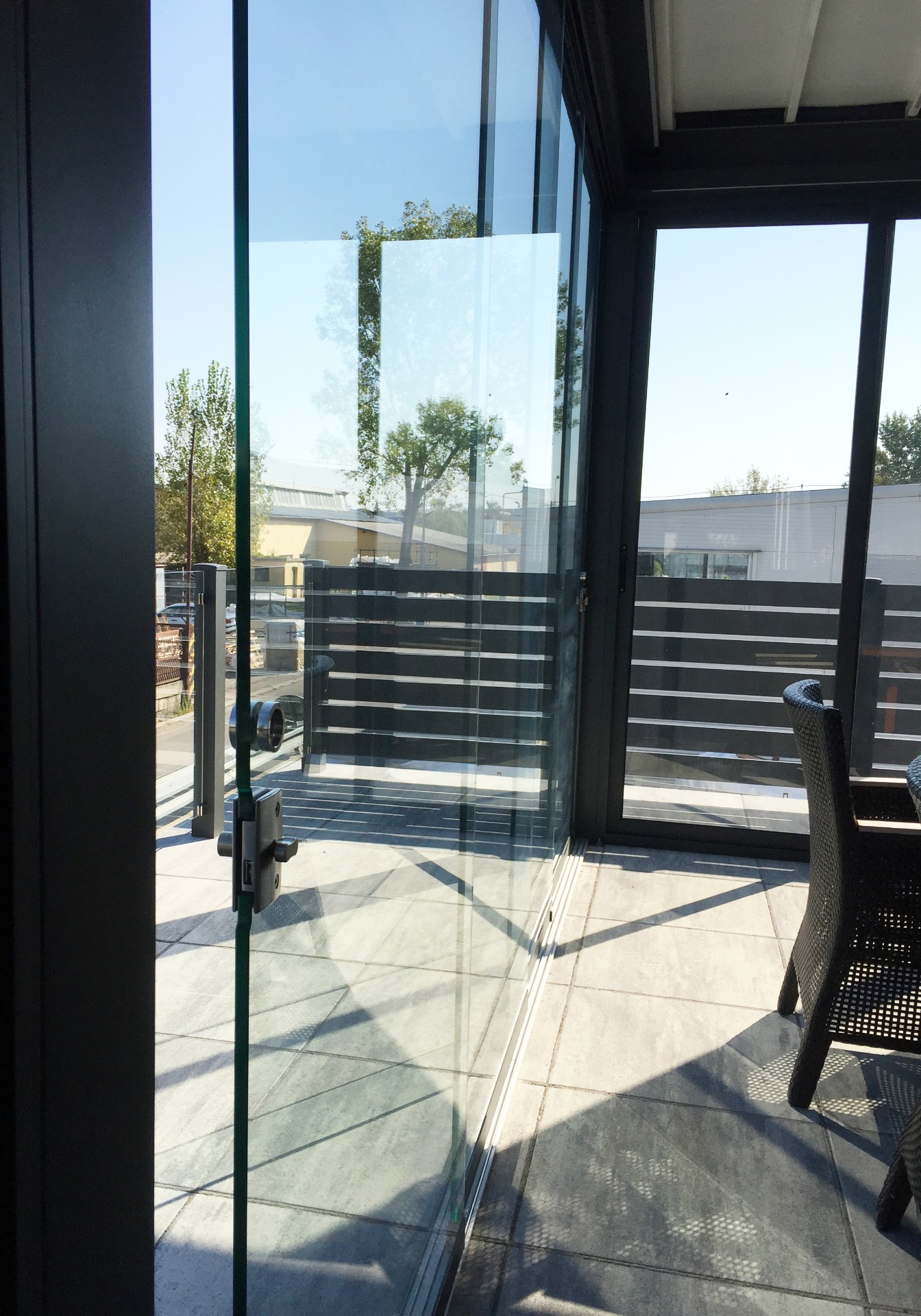 Az alumínium síneken tolható edzett üveg ideális a letisztult dizájn és modern stílus kedvelőinek. Nincs zavaró keret, csak gyönyörű kilátás és maximális védelem az árnyékoló alatt.